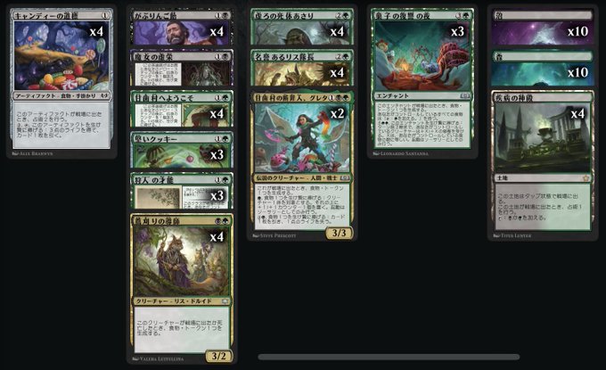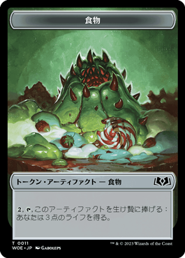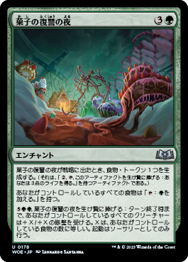 終盤に《菓子の復讐の夜》で大量に生み出したマナによって、『食物』を4/4クリーチャーに変えて攻め込みましょう。